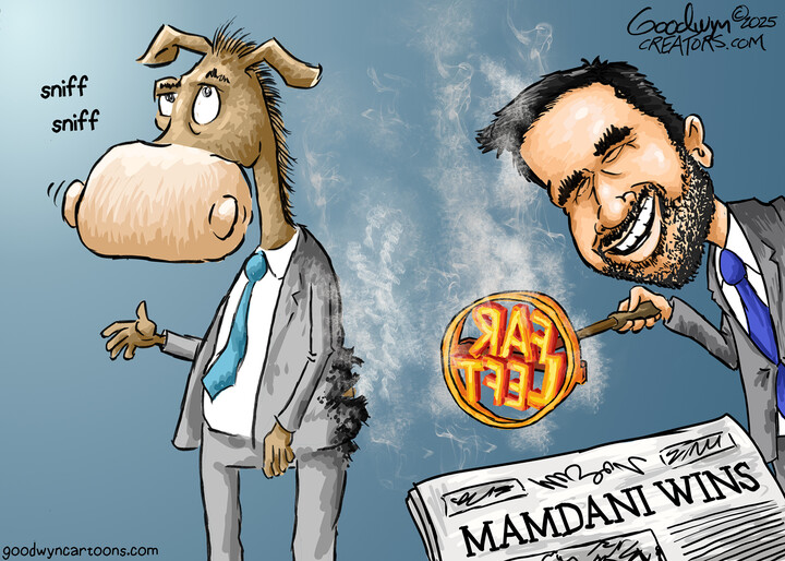 Al Goodwyn's cartoons have appeared in numerous newspapers including The Washington Post, the Washington Times, Politico and the Washington Examiner. He began cartooning in 1989 when he put his physics education and technical experience to work for an international physics publication, The Health Physics News, producing science-themed cartoons for 28 years. In 1997, he expanded into editorial cartoons for a local newspaper, the Aiken Standard in South Carolina, where he lived at the time. This grew to include two more newspapers in the area.
