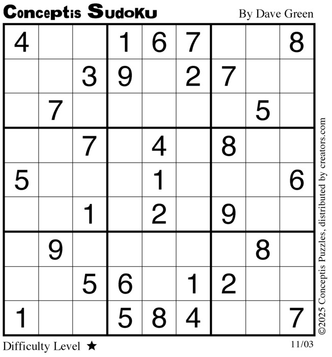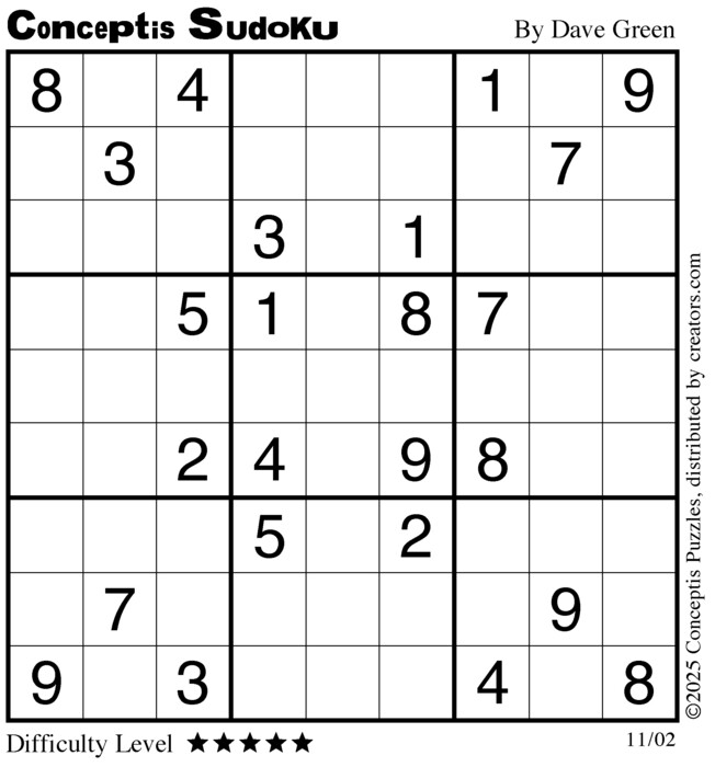 Each puzzle consists of a 9x9 grid containing given clues in various places. The object is to fill all empty squares so that the numbers 1 to 9 appear exactly once in each row, column and 3x3 box.