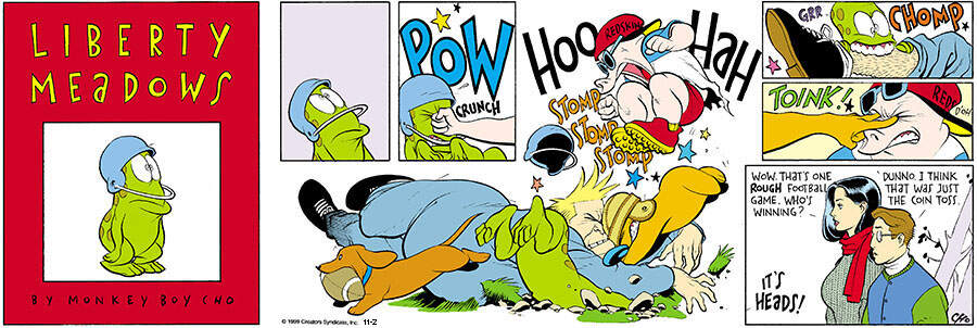 Liberty Meadows, is one of Cho's most popular works spreading laughter by bringing these animal to life with his sense of humor and superior artwork.